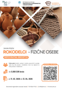 - Javni poziv “Finančne razvojne spodbude za razvoj rokodelskih izdelkov v 2026 – NVO Rokodelci“ je bil objavljen na uradni spletni strani SRRS dne 05. 03. 2026 ob 10.00 uri.